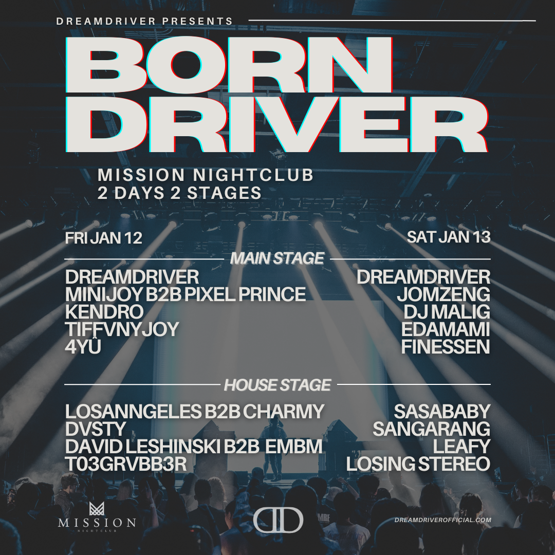 Returning to Mission Nightclub taking place across two stages and two days, BORN DRIVER II curated sought not to just expand in size, but also cover more sonic ground.